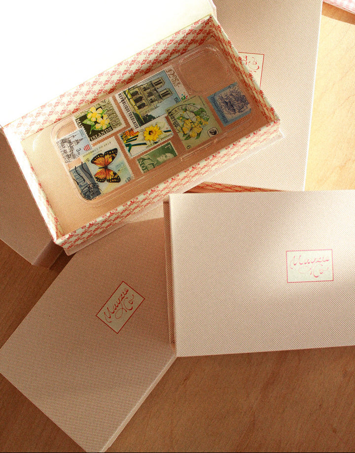 The case is absolutely gorgeous. I tend to be particular when I have a specific idea in mind, but they captured the vibe that I was going for perfectly. (I also got stamps from a country that I was hoping for but didn’t specifically ask for—mind readers??) Can’t recommend Mayzie Co enough!