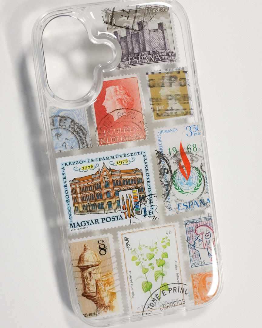 ONE-OF-A-KIND! This case was individually made by hand with real postage stamps and/or pressed flowers.