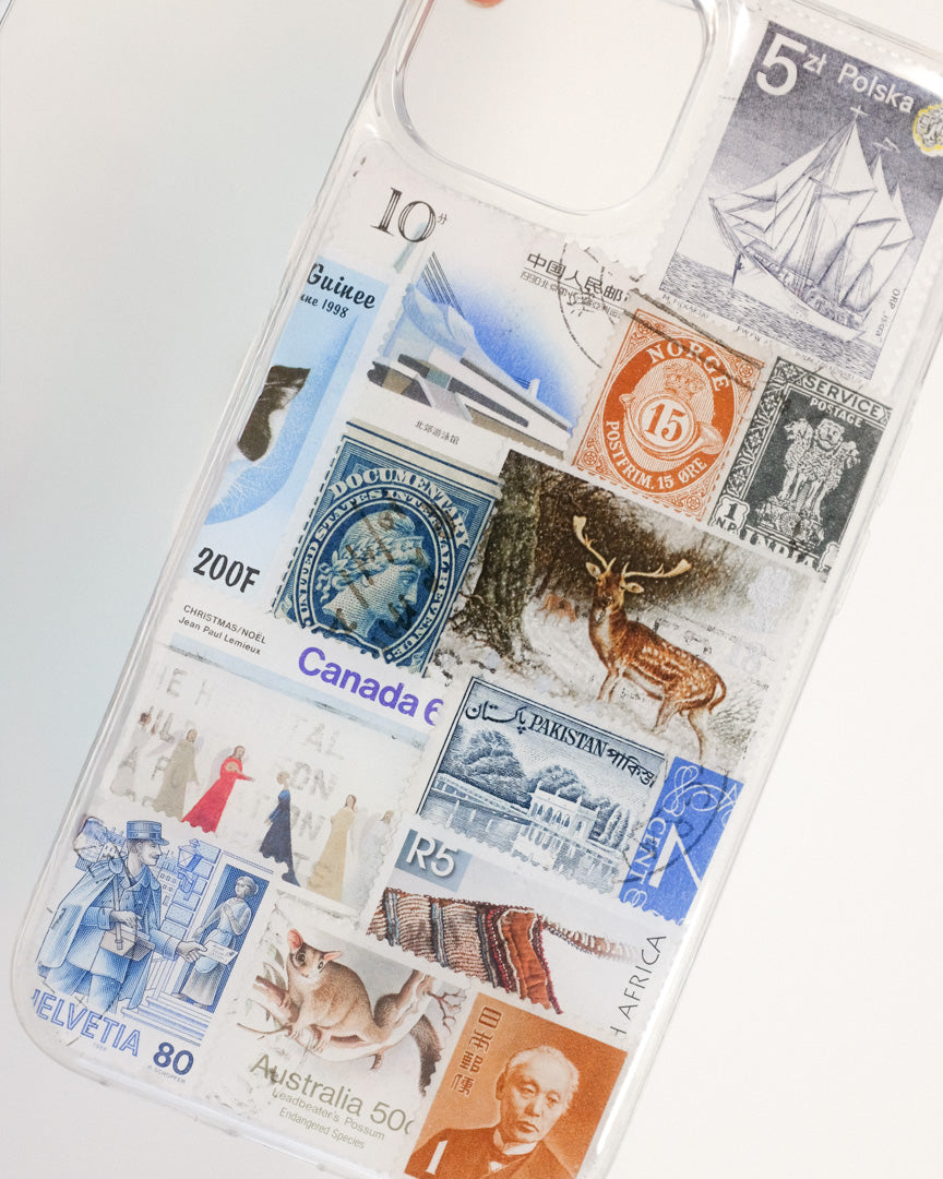 ONE-OF-A-KIND! This case was individually made by hand with real postage stamps and/or pressed flowers.
