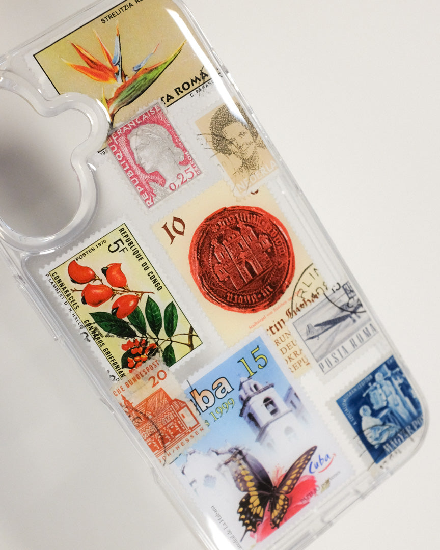 ONE-OF-A-KIND! This case was individually made by hand with real postage stamps and/or pressed flowers.