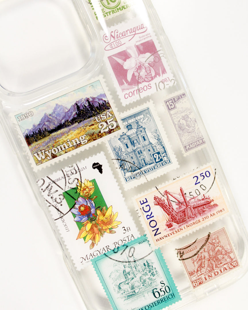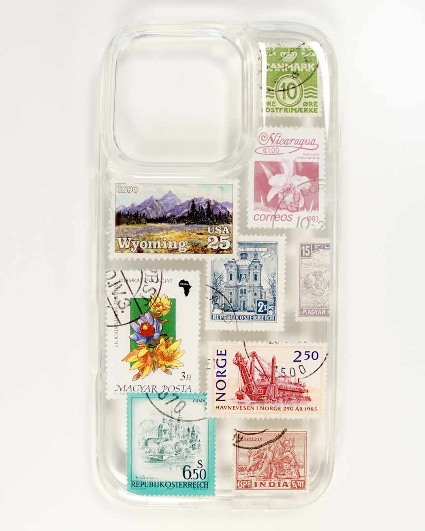 ONE-OF-A-KIND! This case was individually made by hand with real postage stamps and/or pressed flowers.