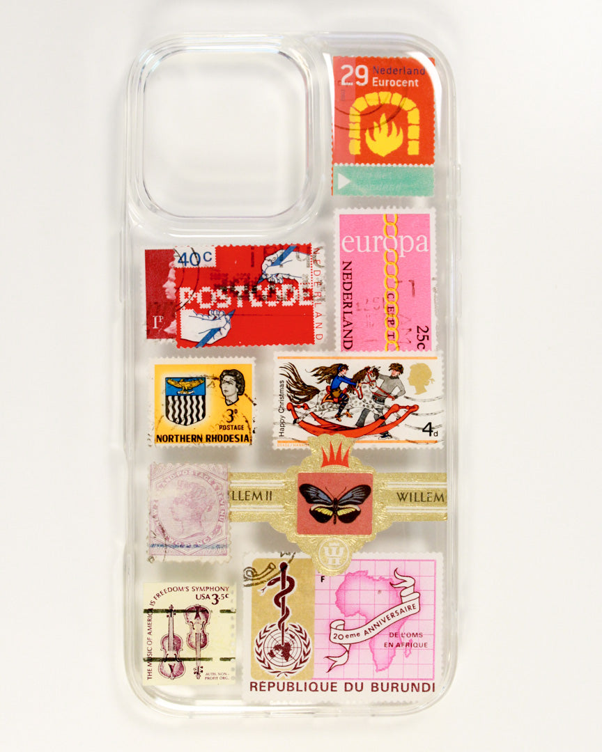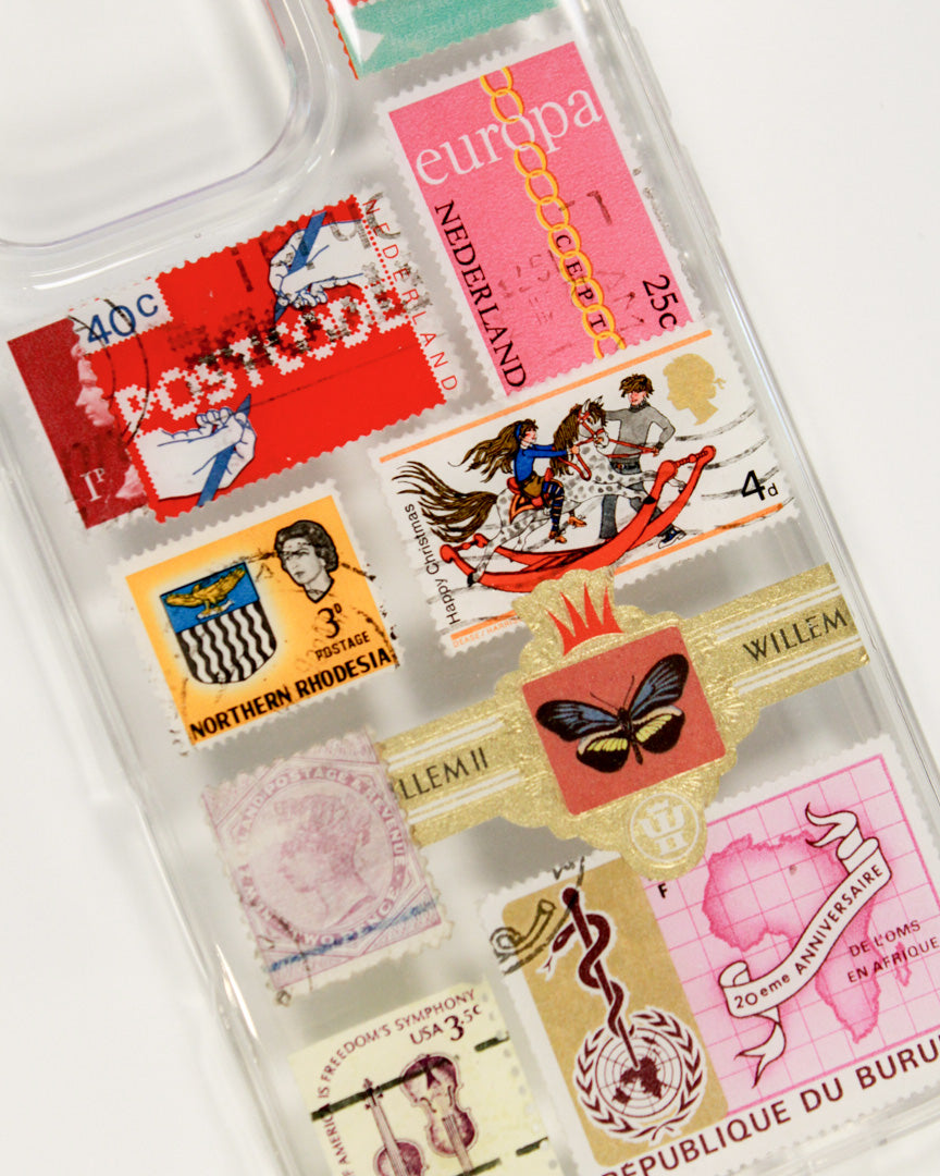 ONE-OF-A-KIND! This case was individually made by hand with real postage stamps and/or pressed flowers.