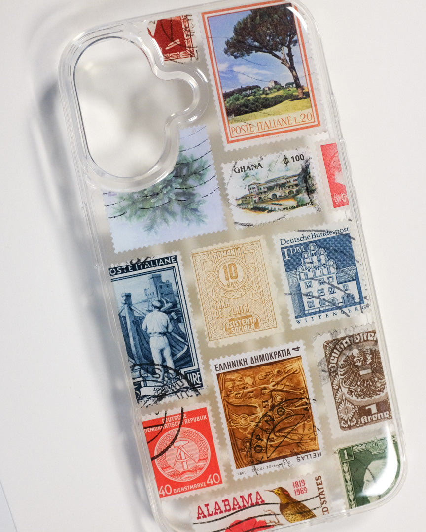 ONE-OF-A-KIND! This case was individually made by hand with real postage stamps and/or pressed flowers.