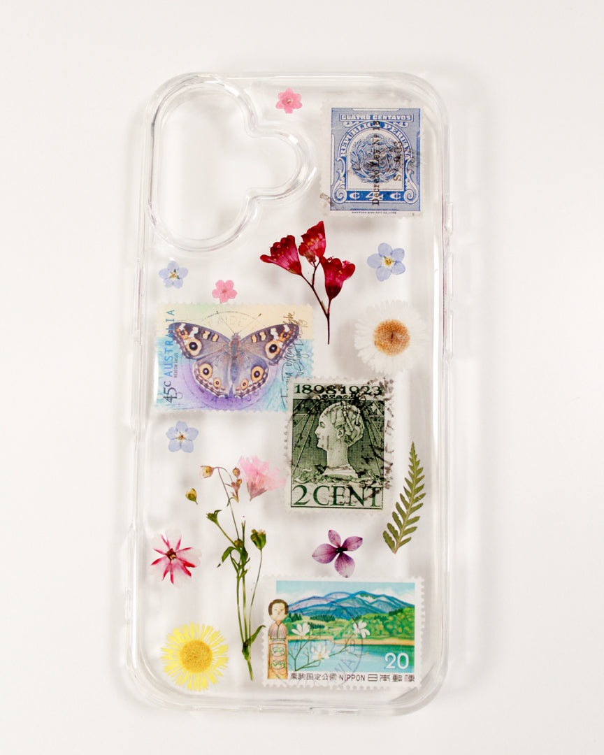 ONE-OF-A-KIND! This case was individually made by hand with real postage stamps and/or pressed flowers.